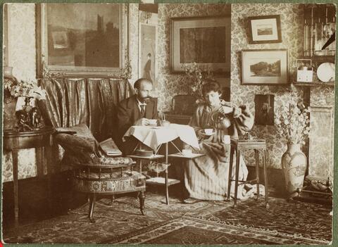 Anna Muthesius (geborene Trippenbach) wurde am 12. August 1870 in Aschersleben geboren. Sie war eine ausgebildete Konzertsängerin und seit 1896 verheiratet mit dem Architekten Hermann Muthesius, dem Gründer des Deutschen Werkbundes, dessen Mitglied sie war. Als Autodidaktin wirkte sie als Innenarchitektin und Modedesignerin. Zwischen 1896 und 1906 war ihr Ehemann als Technischer- und Kulturattaché an der Deutschen Botschaft in London tätig. Hier kam sie erstmals mit den Ideen der Lebensreformbewegung in Berührung: Ein Ziel war es, zu einer von der Pariser Mode unabhängigen Gestaltung der Kleidung zu kommen und gesundheitliche Aspekte zu fördern. Sie knüpfte Kontakte zu Walter Crane (1845-1915) und Charles Rennie Mackintosh (1868-1928). Auch in Deutschland gab es eine Erneuerungsbewegung und eine öffentliche Diskussion um die Korsage. Anna Muthesius war eine wichtige Vertreterin dieser Bewegung und maßgeblich an der Schaffung künstlerischer Modelle weiblicher Reformkleidung beteiligt. Ab 1912 veranstaltete sie regelmäßig einen künstlerischen Salon im Sommerhaus der Familie auf Hiddensee in Vitte. Anna Muthesius starb am 30. März 1961 in Berlin.