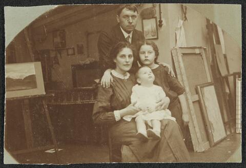 Der Maler und Grafiker Paul Wilhelm Bürck mit seiner Familie im Atelier