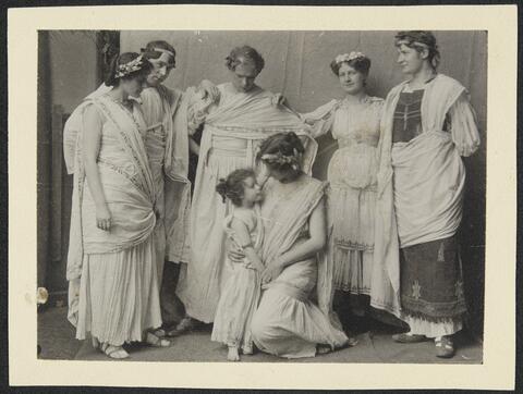 Gruppenbild mit in römischen Togen verkleideten Personen (darunter Paul Wilhelm Bürck mit seiner Familie)