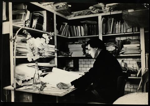Der Bildhauer und Grafiker Hans-Joachim Burgert am Arbeitstisch